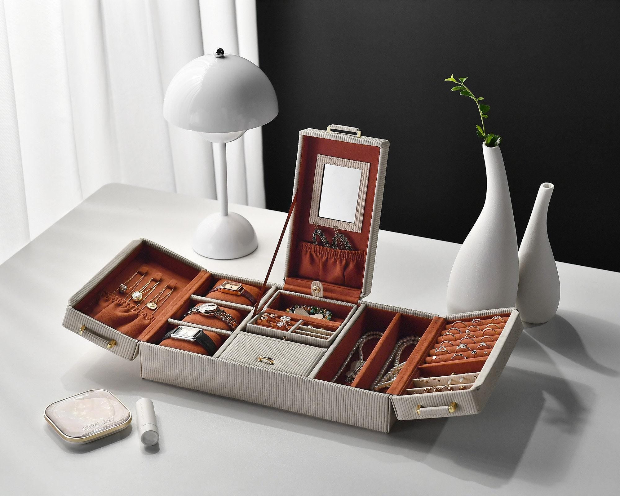 Small Travel Jewelry Organizer Case Custom Engraved Leather Jewelry Box Personalized Gifts for Women