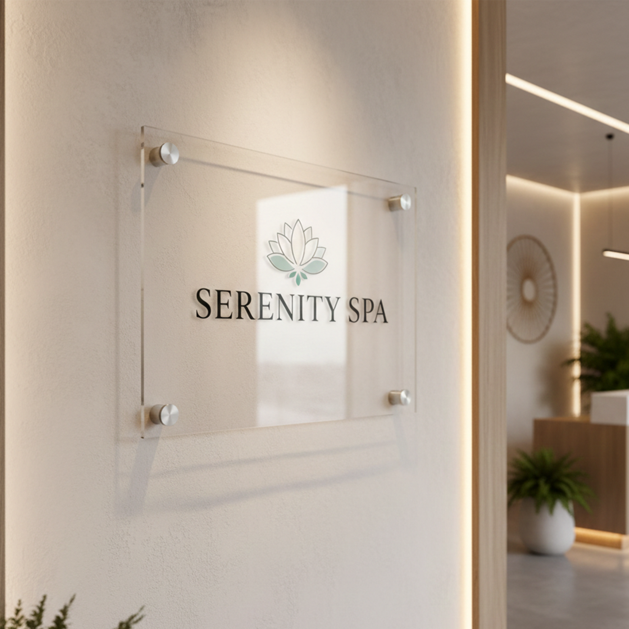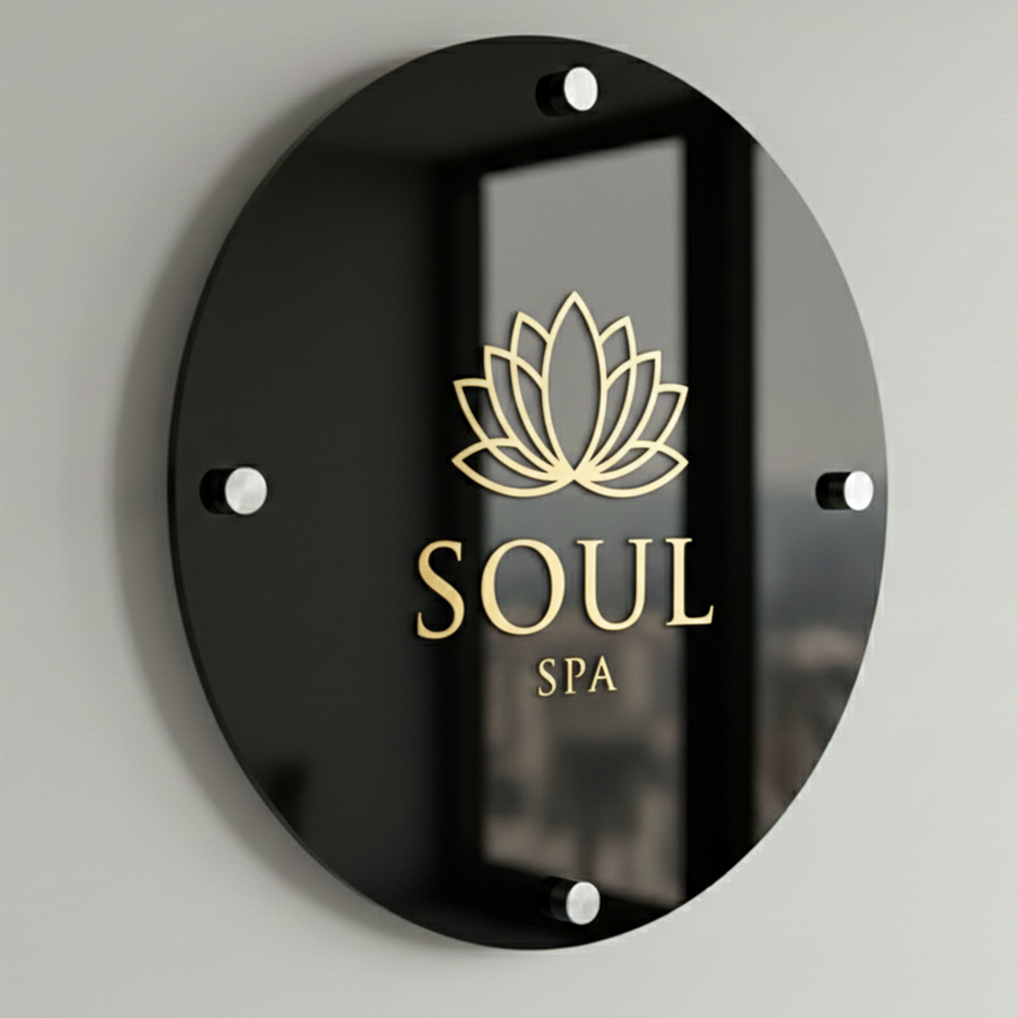 Designed to reflect the elegance and calm of your spa or salon space, this UV-printed acrylic logo sign adds a high-end look to your reception area or treatment room. A great branding tool for wellness professionals who want to communicate style, cleanliness, and professionalism.