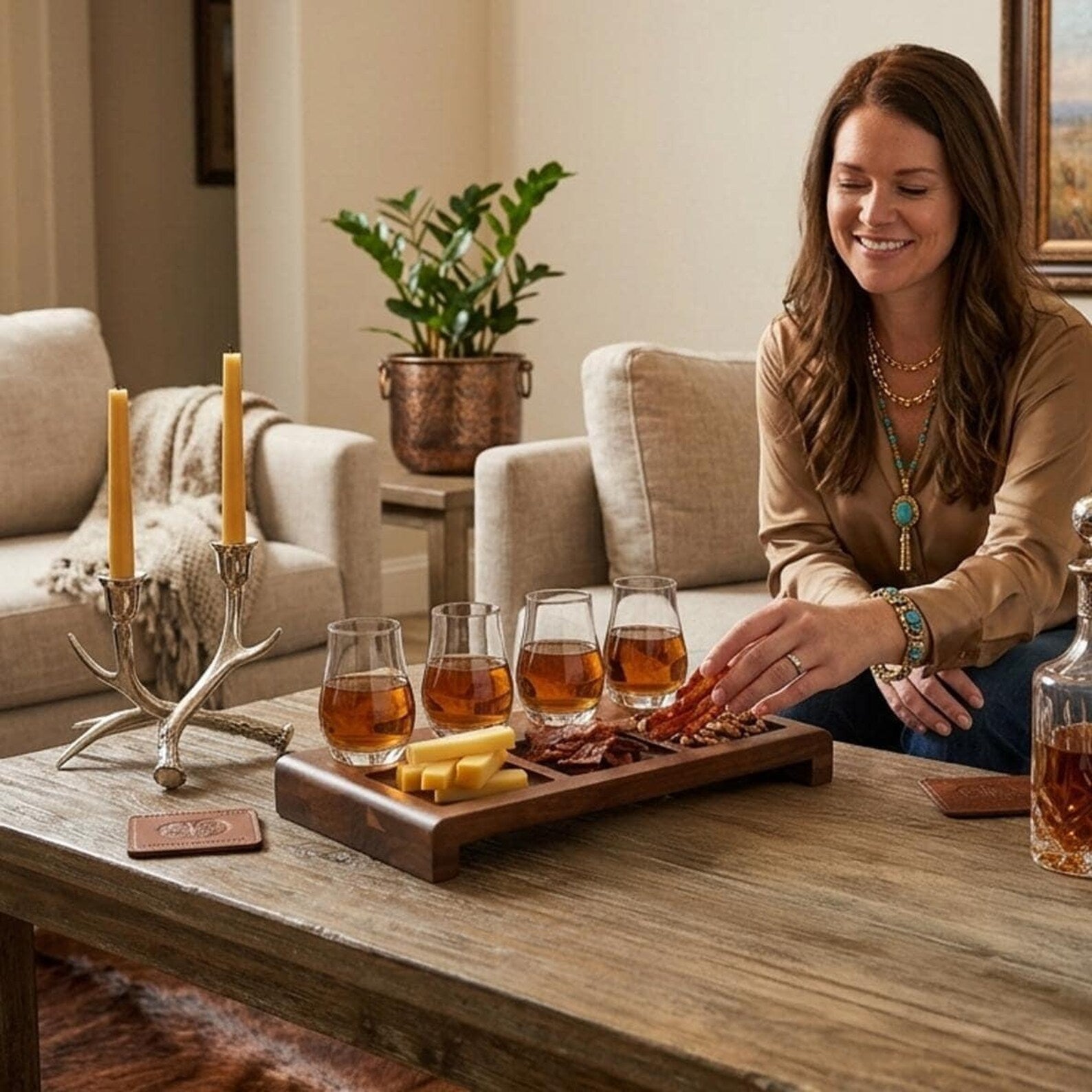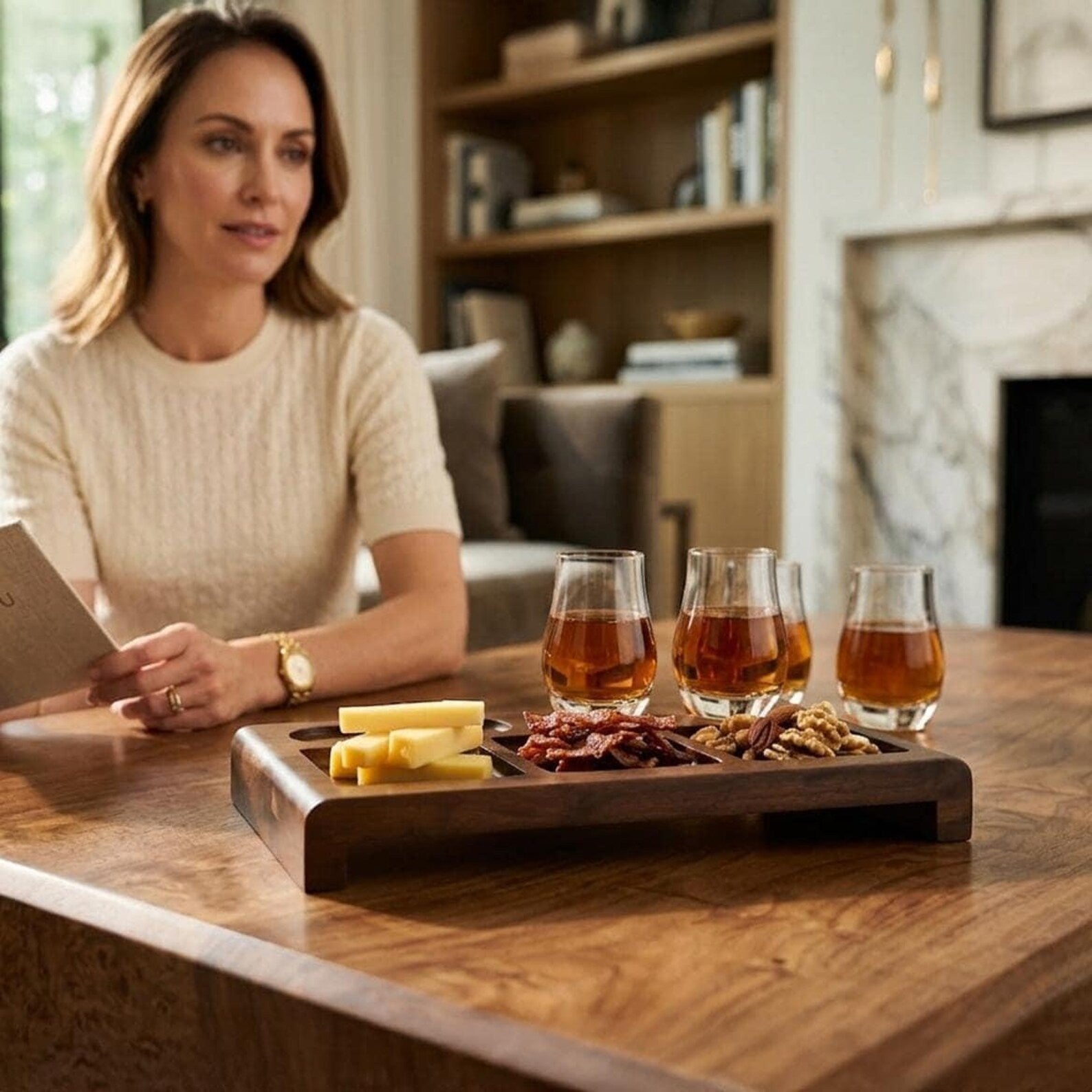 This new home drinkware tray tulip whiskey glasses set is a stylish gift for best friend who enjoy whiskey tastings and a thoughtful choice for women who love hosting gatherings at home. Designed as gifts for strong women who have everything, this elegant tasting board brings people together during housewarmings, brunch with friends, and relaxed whiskey tasting nights.